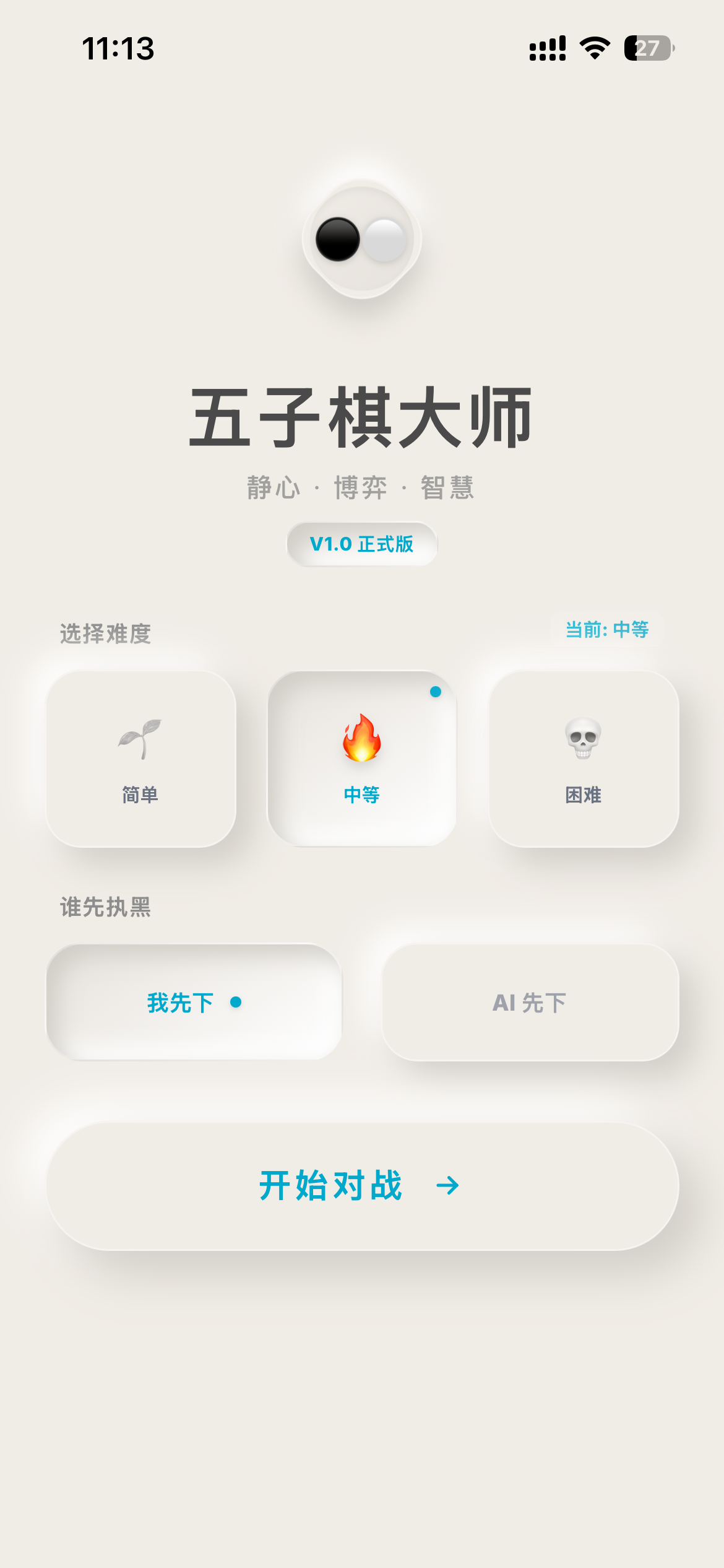 - 🔥 中等: 模拟普通玩家水平,互有攻守,适合休闲娱乐。