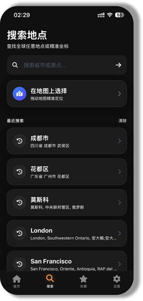 - 月相追踪:为星空摄影师增加月出月落和银河位置查询。