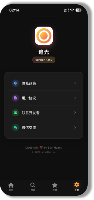 在开发过程中,我尽量克制增加功能的欲望。比如最初想加入复杂的天气 API,但考虑到 API 的延迟和 Key 的限制,我决定先砍掉,专注于“太阳”本身。这种减法让 App 保持了极高的纯净度和稳定性。